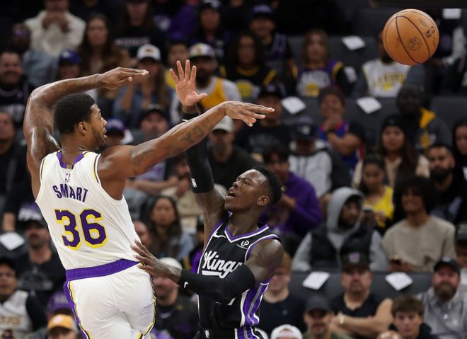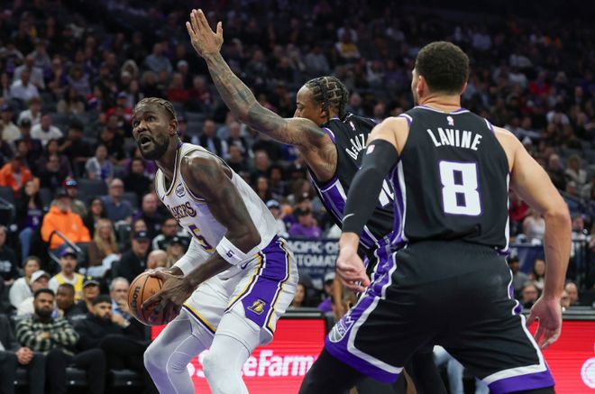 中场休息回来,湖人率先连得4分,施罗德三分命中,湖人冲击内线取得70-65领先优势。拉文与德罗赞连续得分,湖人逐步74-76被反超比分,湖人再度遭遇伤病侵袭,文森特踩到艾顿脚上扭伤脚踝退赛。双方再度咬住比分,里夫斯持续内外开花得分,他第三节一人得到15分,引领湖人单节33-28净胜5分,三节结束湖人95-90领先国王。前三节比赛,里夫斯26+7+8引领湖人3人得分上双,德罗赞与拉文均是21分,引领国王多达5人得分上双。